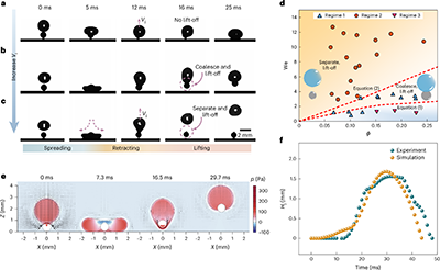 近期,香港城市大学Steven Wang教授联合中国科学院过程工程研究所杨超院士、帝国理工学院Omar Matar院士等,从自然降雨清洁表面的现象获得启发,在超疏水基底上构建液滴撞击颗粒的实验体系,并结合理论分析与数值模拟,对液滴-颗粒相互作用进行了系统研究。研究发现,当约 5 μL 液滴撞击表面单颗粒时,在适当条件下,液滴并不是简单将颗粒推离原位,而是会在回缩阶段对颗粒产生包裹与抬升作用,最终促使颗粒脱离基底。最令人惊讶的是,液滴甚至可以带起密度约为自身8倍的不锈钢颗粒。