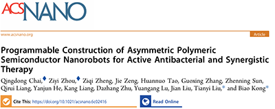 Programmable Construction of Asymmetric Polymeric Semiconductor Nanorobots for Active Antibacterial and Synergistic Therapy