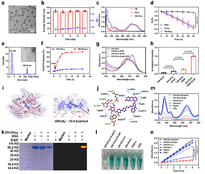 图2. DN-Ghcy的形貌及光化学性质表征。