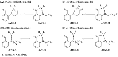 图2. 邻烷氧基苯乙烯与催化剂的可能配位模型