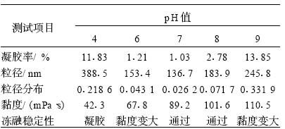 表 7 pH 值对乳液性能的影响