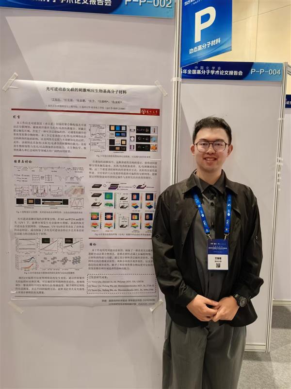 艾锦瑄同学做题为“光可逆动态交联的刺激响应生物基高分子材料”学术墙报。