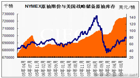 图为NYMEX原油期价与美国战略储备原油库存走势图。(图片来源:中信建投期货)