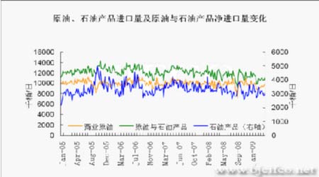 原油、石油产品进口量及原油与石油产品进口量变化图。(来源:北京中期)