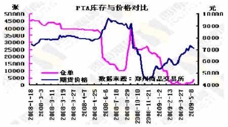图为PTA库存与价格走势图。(图片来源:西南期货)