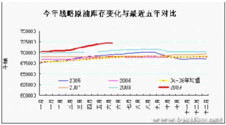 今年战略原油库存变化与近五年对比图。(来源:北京中期)