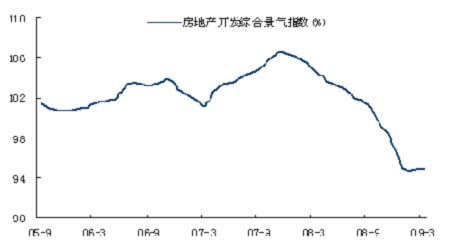 图为中国房地产景气指数走势图。(图片来源:Bloomberg、安信期货研发部)