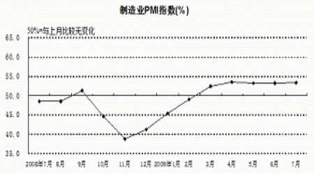 中国物流与采购联合会最新发布的数据显示,7月中国制造业采购经理指数(PMI)为53.3%,比上月微升0.1%,这是今年3月以来PMI连续5个月高于50%,表明经济运行继续保持回升态势。