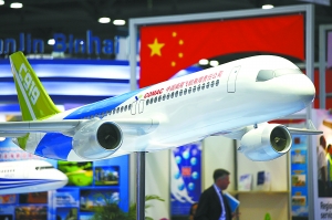 国产C919大型客机模型昨天首次揭开神秘面纱,亮相亚洲航展