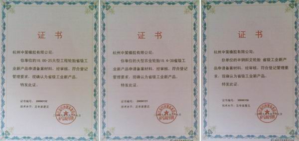 近日,杭州中策橡胶有限公司旗下的“18.00-25大型工程轮胎”、“大型农业轮胎18.4-38”及“半钢斜交轮胎”三项产品,通过了浙江省经济贸易委员会的省级工业新产品项目鉴定。