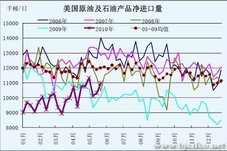 图为美国原油及石油产品进口量走势图。(图片来源:北京中期)