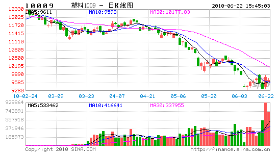 端午节之后,连塑并未有因端午期间原油价格的上涨而延续反弹之势,期价在冲击万元整数关口时,再次受到空方的打压,期价在两个交易日内下挫370点,跌幅达到3.81%。在技术形态上,K线与6月8日的下挫形成双底形态,后市期价将如何走,笔者从以下三点进行分析。