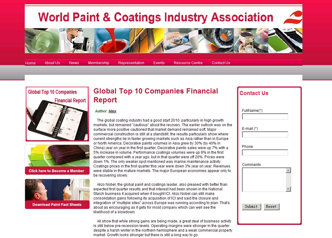 世界油漆涂料工业协会(WPCIA)研究员亚历克斯的报告首先简要介绍全球涂料发展情况,包括一般资料和主要经济指标。此外,还对世界十大涂料品牌公司进行了深入的市场分析。