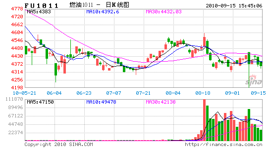 上海期货交易所燃料油期货8 月份走出一波涨跌互现的行情。总体上来说,主要受国际原油期价走跌影响,但是沪油期价表现比NYMEX 原油期货价格相对抗跌,市场需求基本面持续低迷,成交数量较少,多数商家持观望态度,有些玩家将重心也转移至期货市场。基本面持续疲软,投资者主要关注外围市场,月末主力合约1011 期货价格与现货价格相当,月K 线收于上影线较长的阴线,显示上方压力较大,本月将有可能继续回落。