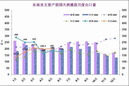 图为主要产胶国天然橡胶月度出口量走势图。(图片来源:ANRPC)