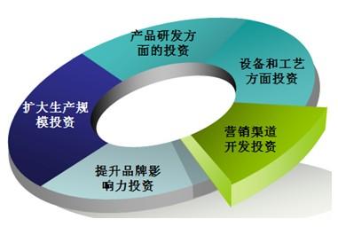 从下图预测来看,2011-2016年建筑涂料产品行业投资方向主要为:开发营销渠道投资,提升品牌影响力,加大广告宣传投资;加大新产品推出,在产品研发方面的投资;提高产品质量和提高劳动生产率,在设备和工艺方面投资;扩大生产规模方面的投资。