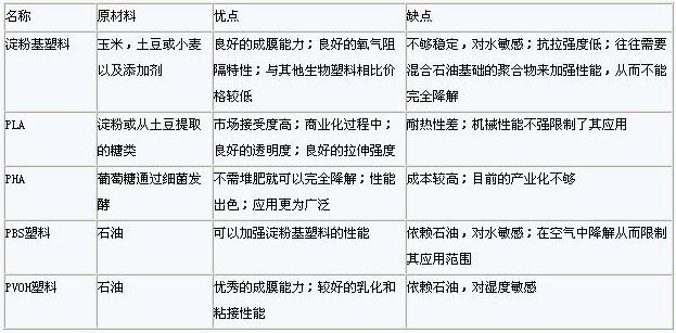 下表为主要的生物降解塑料性能的比较: