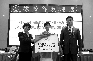 10月16日,中国橡胶工业协会驻橡胶谷办公室在橡胶谷举行了揭牌仪式。橡胶谷位于青岛四方区,是一个以行业协会、政府、知名橡企等为支撑的高端产业聚集区。其发展模式借鉴了美国硅谷的成功经验,区内企业互为上下游、供需方。9月份,橡胶谷有限公司曾和中橡协签订了战略合作协议,双方将共同建设橡胶谷。图为中橡协常务副秘书长徐文英(左)和青岛市四方区常务副区长王波(右)为中橡协驻橡胶谷办公室揭牌。