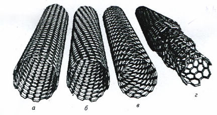 碳纳米管局部图形(右一为多层管;左一~三为单层管)