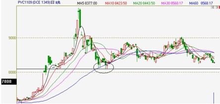 综上所述,未来一个月内V1109在8100的支撑位较强,将在固定资产投资大幅上升的预期下迎来一波的上涨行情,目前是分布建立战略性多单的好机会;由于PVC产业已进入微利时代,在供给过大与成本竞争激烈的压制下,反弹空间不大估计在8800左右,随后将再次进入下跌趋势。