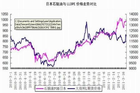 图为日本石脑油与LLDPE价格走势对比图。(图片来源:卓创资讯 北方期货)