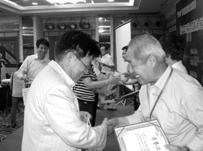 5月25~27日在西安举行的第十四届全国涂料涂装技术信息交流会暨交通用涂料涂装技术研讨会上,业内专家和企业负责人交流了现代涂料涂装技术新进展,推出了一批涂料新产品和新材料。会议还评选了优秀论文20多篇。图为中国氟硅有机材料工业协会名誉理事长黄澄华(左)为论文获奖者颁奖。