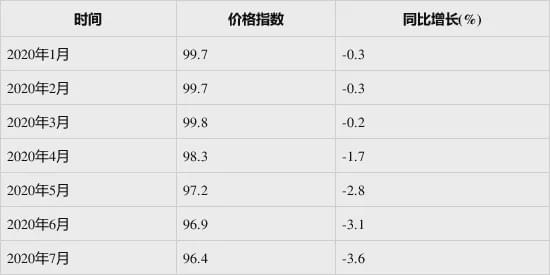 根据国家统计局最新数据显示,全国涂料、油墨、颜料及类似产品制造工业生产者出厂价格指数(上年同月=100)2020年1-7月份分别为99.7、99.7、99.8、98.3、97.2、96.9、96.4。