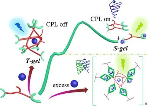 图5 LysTPY在不同刺激调控下的微观分子组装示意图和“off-on” CPL调控。