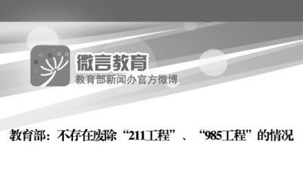 这大概是2014年最为乌龙的一条教育新闻。11月中旬,关于“985工程”“211工程”要取消的讨论可谓热火朝天。这种说法来源于中南大学校长张尧学在学校内部会议上的几句讲话录音,属于媒体误读。随后,教育部官方微博称“不存在废除‘211工程’‘985工程’的情况”。