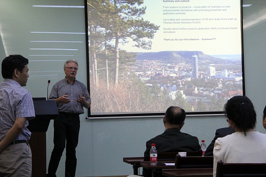 近日,德国耶拿大学有机化学与高分子化学研究所的Jürgen Thomas Heinze教授应高分子物理与化学重点实验室刘瑞刚老师的邀请来访。并进行了题为“New materials from polysaccharides - from synthesis to applications”的精彩报告,报告内容主要涉及天然高分子聚合物纤维素的化学改性及新型纤维素功能材料的应用等。Jürgen Thomas Heinze教授成为2015年高分子物理与化学重点实验室“高分子科学前沿讲座”的第五位报告人。