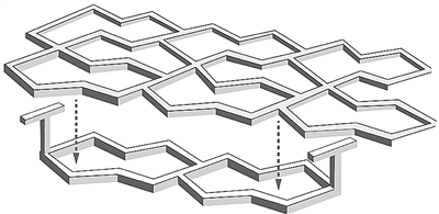 研究团队发表在最新一期《科学进展》杂志上的论文称,将T形“柱子”绑定在蜂窝上,当第二层叠加其上时,这些“柱子”就会像小钩子一样,穿过蜂窝孔洞扣结到位。这如同魔术贴(粘扣带)上的塑料钩和环,设计的灵感来自植物为将种子黏在动物身上而生成的钩刺。