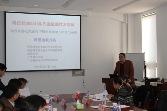 近日,科技部高技术中心组织专家对中科院长春应化所牵头承担的先进能源技术领域863计划“先进燃料电池发电技术”主题项目的课题一“高性能移动式直接甲醇燃料电池长时发电系统”进行了验收,听取了项目首席专家、课题负责人邢巍研究员做的验收汇报,审阅了验收材料,并进行现场考察和详细的技术质询。