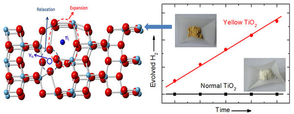 利用本征缺陷态氧化钛实现可见光光催化产氢是当前纳米材料国际研究前沿。迄今获得的这类材料主要是含有三价钛的蓝色缺陷态氧化钛,但该材料在产氢过程中需要加入Pt、NiOx等作为助催化剂,这不仅会造成二次污染,而且还大幅度增加了材料成本。