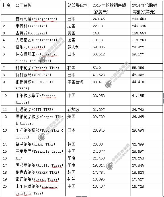 - 美国《轮胎商业》公布了2015年度全球轮胎75强 2015-09-09