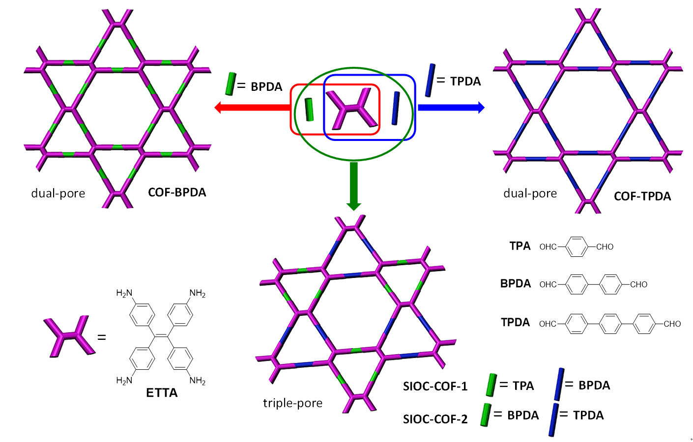 混合连接基元策略构筑三孔共价有机框架