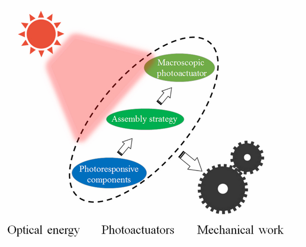 光致变形材料是一种在光波的照射下,材料本体发生变形(伸缩、弯曲)现象的新型智能材料,它能实现光能到机械能的直接转化,而无需通过齿轮等机械传送装置的转换,具有远程的、无接触、无损伤、易操控等特点,在仿生机器人、生物医学器件、微流控、太阳帆等领域具有重要的应用前景。因而发展高性能的光致变形材料具有重要的科学意义和应用价值。对于光致变形材料的设计而言,能量转换方式和结构组装是两个重要的方面,会直接影响到光-机械的性能输出。