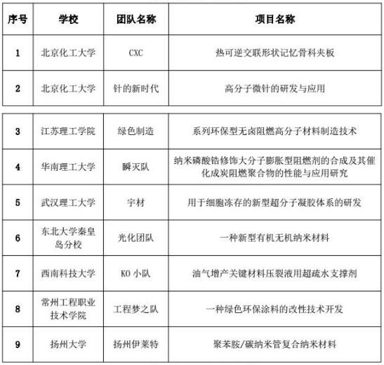第四届中国大学生高分子创新创业大赛获奖项目名单