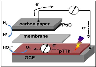 在本工作中,研究人员将光催化引入ORR,发现采用聚合物半导体光催化剂、光照可显著促进ORR的电催化活性,起始电位由0.66V正移到1.34V(远远超过商业铂催化剂的1.0V),且电流在0.6V时增大了44倍。由此构建的光驱动概念型H2-O2燃料电池中,光照使燃料电池的开路电压从0.64V增大到1.18V,短路电流增大1倍。光催化使半反应ORR和全电池反应的电位分别增大0.68V和0.54V,且该电压值与目前研究的大多数聚合物太阳能电池的电压(0.6-0.8V)相接近。光驱动概念型H2-O2燃料电池可被认为是聚合物太阳能电池和H2-O2燃料电池叠层耦合的结果。光促进分子氧还原的机理可能是光激发聚合物的电子从价带到导带,导带上激发态的电子具有足够的电势转移填充到氧分子的反键轨道(2p*,2s*),从而使氧还原反应更加容易。该研究结果为解决燃料电池ORR反应动力学问题开拓了新的思路,显示出潜在的应用价值。