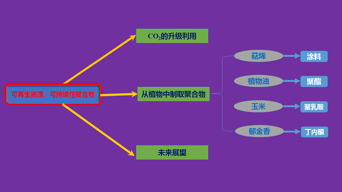 近年来,像二氧化碳、萜烯、植物油和碳水化合物等可再生资源被越来越多地应用于聚合物合成领域,用以制备包括弹性体、水凝胶、树脂基复合材料等可持续材料和产品。而催化剂高效的催化作用对于单体的合成、选择性聚合反应的促进以及废弃材料的循环利用都具有十分重要的意义。因此可持续聚合物材料具有很好的应用前景。