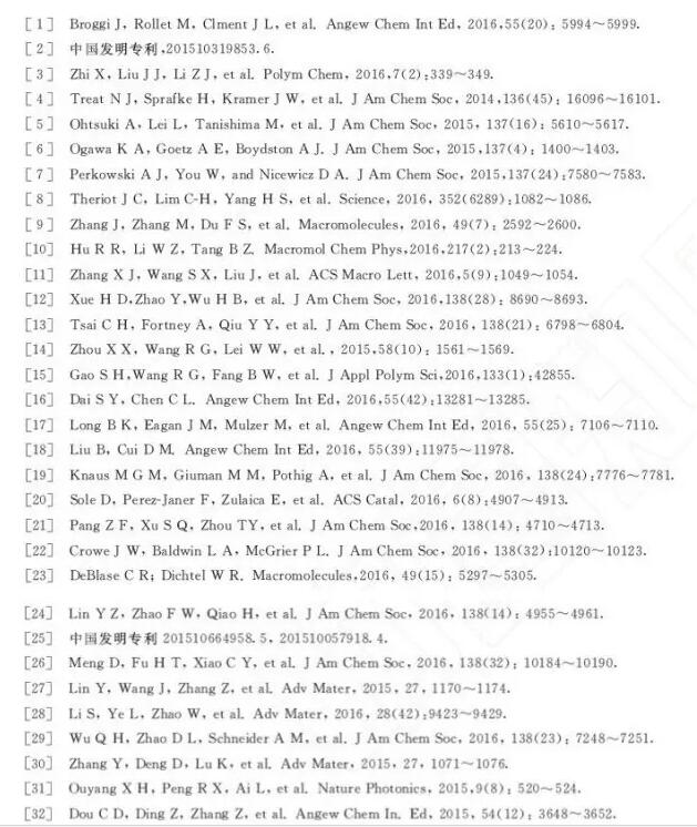 在高分子化学合成方面,时有新颖反应方法报道。主要研究是围绕能源,健康和环境等领域发展需求,进行功能化高分子的构筑。最近,高分子合成前沿领域的进展主要集中在如下方面。