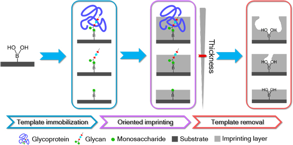 图1. 硼亲和可控定向表面印迹原理
