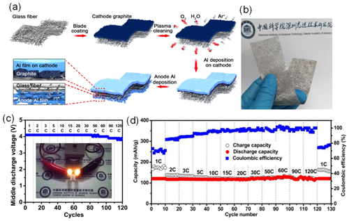 近日,中国科学院深圳先进技术研究院集成所功能薄膜材料研究中心唐永炳研究员及其研究团队成功研发出一种一体化结构设计的柔性超快充放电池,这种新型结构设计显著提升了电池的快充快放特性,同时保持了高的能量密度和循环性能。相关研究成果Integrated Configuration Design for Ultrafast Rechargeable Dual-Ion Battery(一体化结构设计的超快充放双离子电池)已在线发表于国际著名能源材料期刊Advanced Energy Materials(DOI: 10.1002/aenm.201700913,IF=16.721)上,并申请1项国际发明专利(PCT/CN2017/078205)。