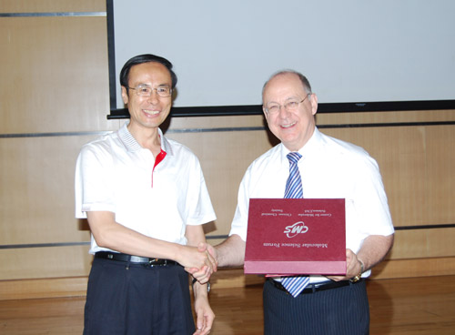 7月9日,英国Bradford大学Philip David Coates教授应邀访问化学所,并做了题为“Micromoulding of polymers - probing what molecules do in high pressure, velocity and temperature gradients”的分子科学论坛报告,万立骏所长为Coates教授颁发了“分子科学论坛讲座教授”荣誉证书。