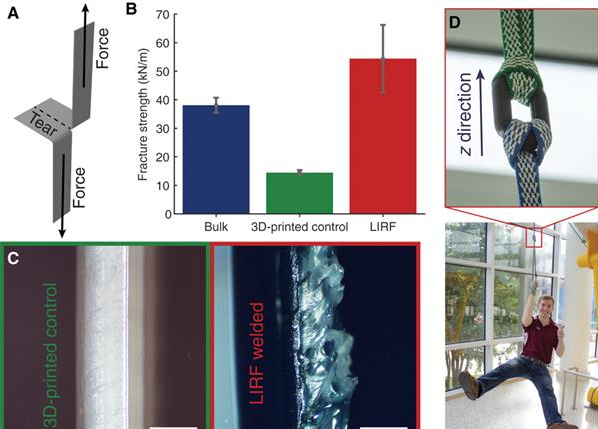 “能够以更高的焊接强度打印材料,为3D打印塑性塑料开辟了广泛的新应用领域”,Micah Green阐述道: “3D打印焊接强度的增加意味着聚合物线材上的MWCNT涂层通过LIRF加热,可用于制造具有接近常规制造工艺所制造的结构件”。
