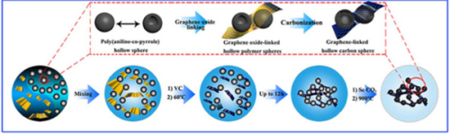 图1 石墨烯交联的碳空心球气凝胶制备工艺路线示意图