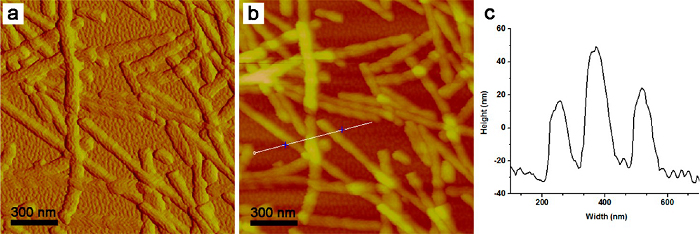 图4 相关组装体的原子力显微镜照片