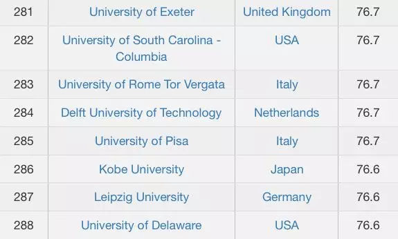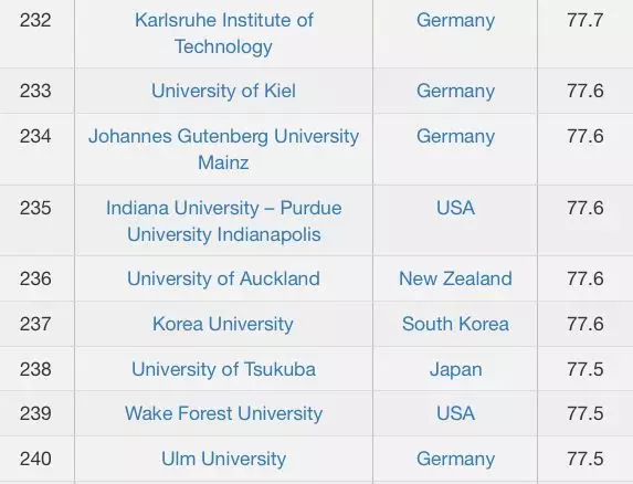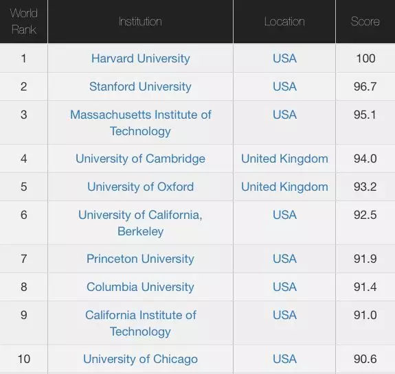 前一百名高校,美国占去半壁江山,共有51所大学入围。前十的名单中,美国占了8个名额。