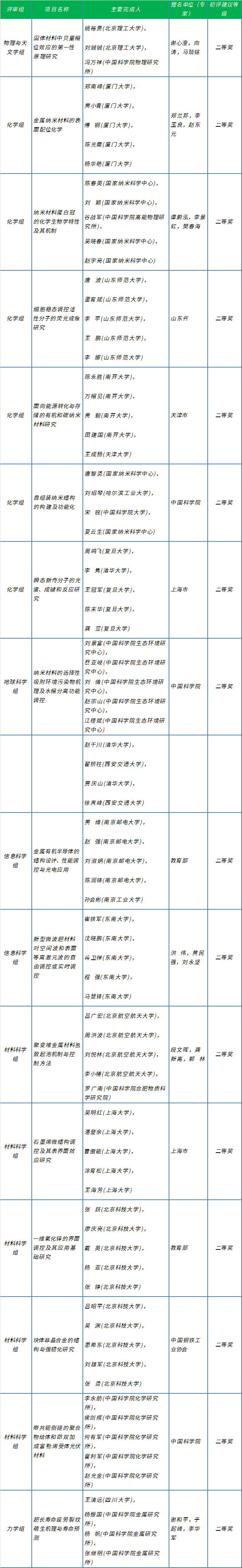 - 国家科学技术奖初评结果发布 化工材料类一览 2016-07-01