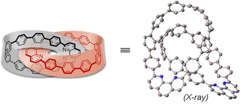 具有迷人空间结构的莫比乌斯环(Mobius strip)不仅在数学拓扑领域有着重要地位,在分子层面中具有莫比乌斯构象的共轭体系也有着独特的分子性质,例如与传统休克尔4n+2规则互补的芳香性质,因此在分子合成和芳香性理论的基础研究领域具有重要意义。因莫比乌斯构象的共轭分子通常处于亚稳态结构,此类分子的合成与表征长期以来是合成化学中的难点,而基于莫比乌斯共轭的分子构建更复杂的超分子复合体则更具挑战。