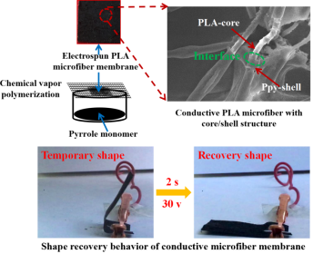 图:基于静电纺丝和化学气相沉积法设计并制备的核壳结构导电形状记忆纤维膜及其电驱动行为